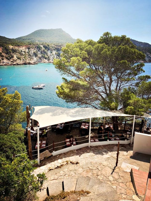 Le restaurant Es Boldadó propose l’un des meilleurs menus de cuisine d’Ibiza et des vues emblématiques d’Ibiza