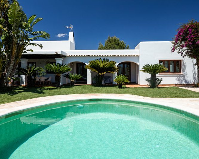 ÉQUIPEMENTS: Piscine à débordement, de style moderne et avec système d’électrolyse saline. – Vues sur la campagne et les montagnes de Santa Eulalia. – Hamacs et mobilier de jardin pouvant accueillir jusqu’à 14 personnes. – Salle à manger intérieure et extérieure et salon pouvant accueillir jusqu’à 14 personnes. – 7 chambres doubles (6 dans la maison et 1 à l’extérieur, juste à l’entrée).